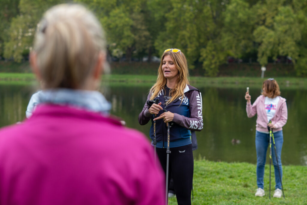 Lucia Turaz Okoličány, prezidentka SNWA a najlepšia inštruktorka NW na svete poskytla reumawalkerom lekciu Nordic Walkingu: