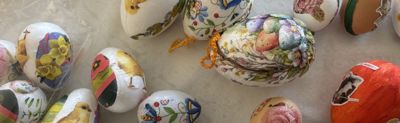 LPRe – Miestna pobočka Topoľčany po výrobe srdiečok sa pustili aj do výroby kraslíc. Učili sa servítkovú techniku a omotávanie bavlnkami.
