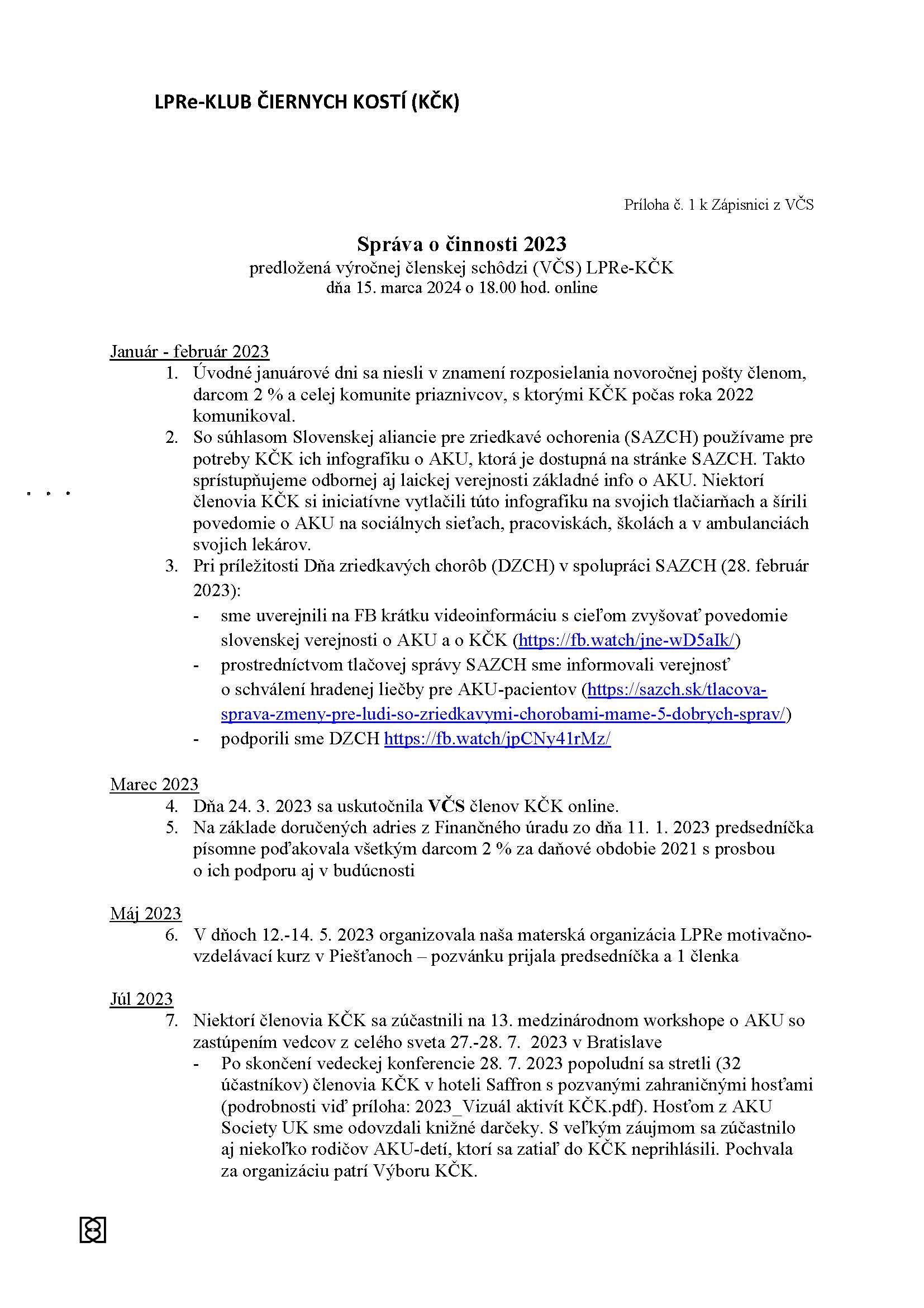 > Vyhodnotenie činnosti Klubu Čiernych Kostí 2023 a plán 2024