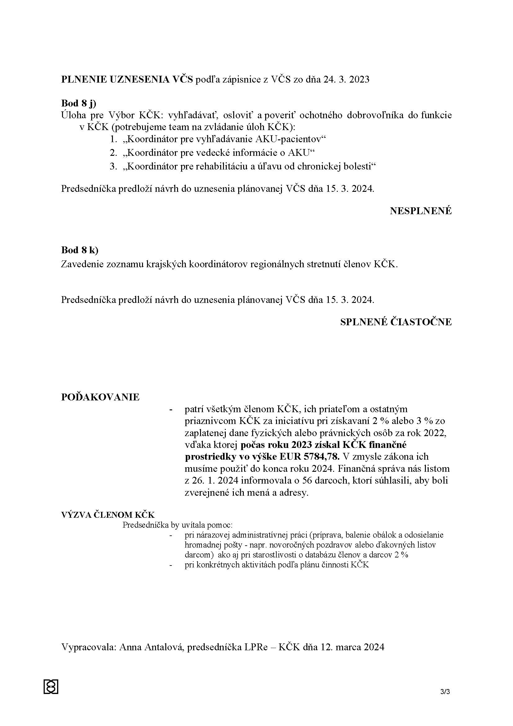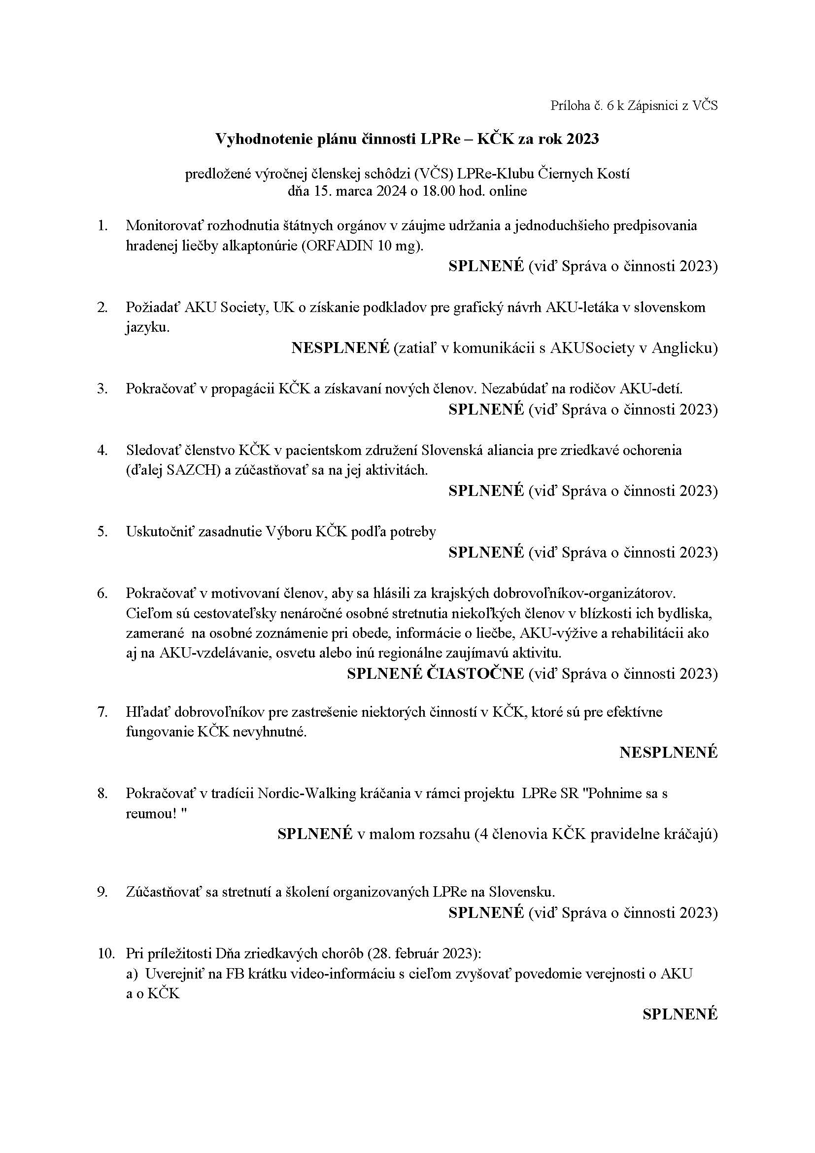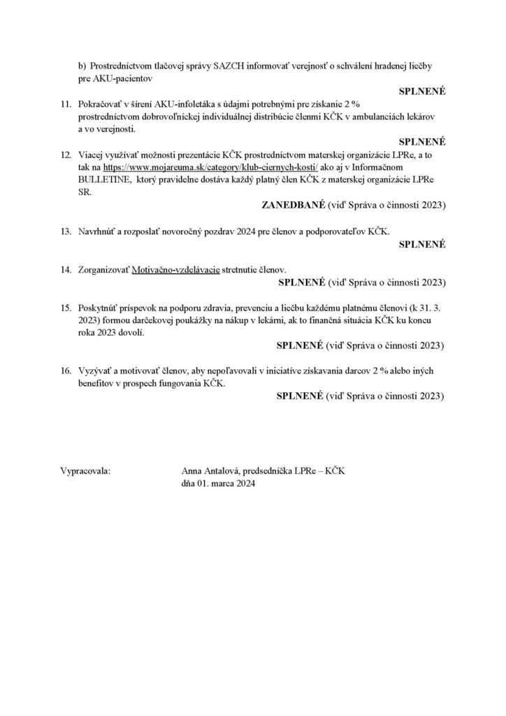 Vyhodnotenie činnosti Klubu Čiernych Kostí 2023 a plán 2024